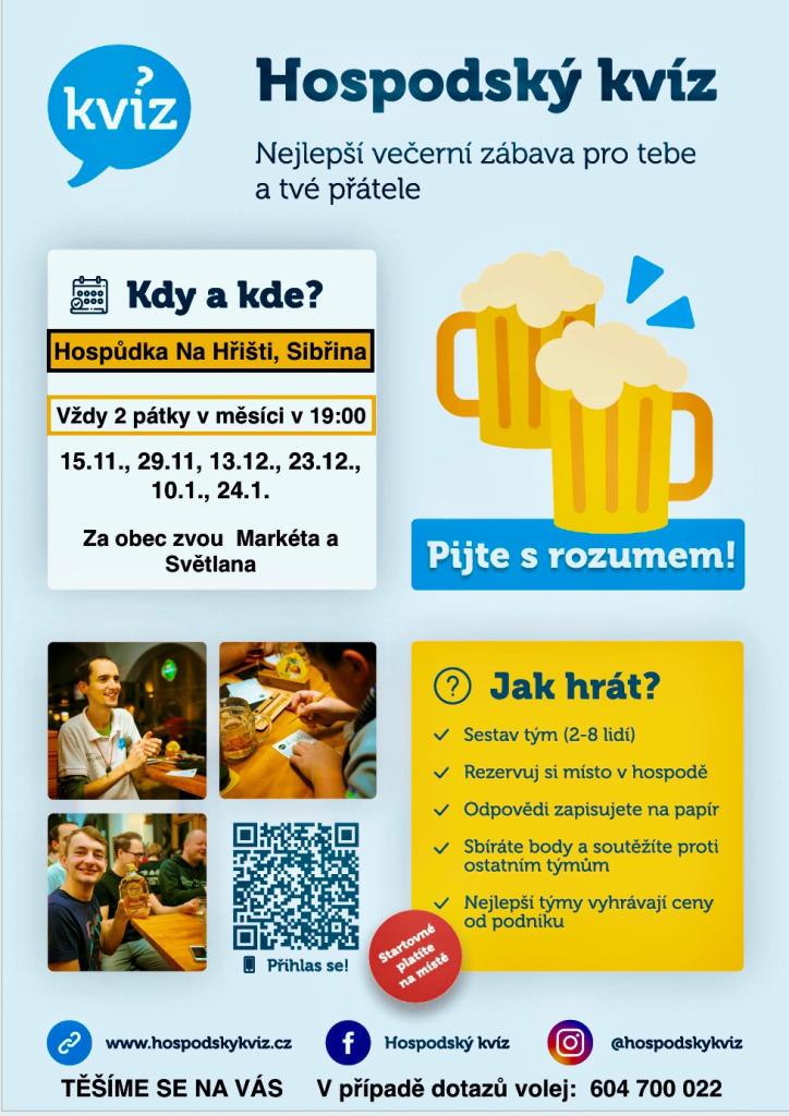 Hospodský kvíz v Hospůdce na hřišti v Sibřině